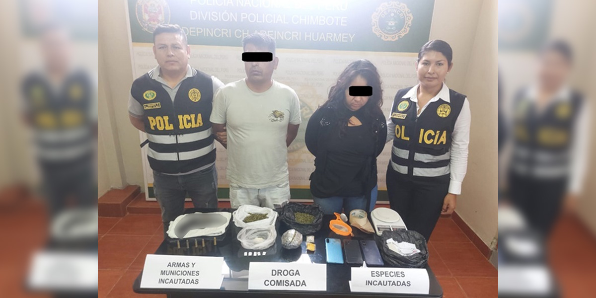 Efectivos del Área de Investigación Criminal PNP de Huarmey, en la Región Policial Áncash, apresaron a un hombre con detención preliminar y a una mujer por estar involucrados en el delito de tráfico ilícito de drogas. El operativo se desarrolló en una vivienda del asentamiento humano Ampliación Santo Domingo, en Huarmey, Áncash.
