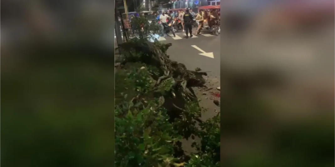 El trágico suceso tuvo lugar en una concurrida zona céntrica de Iquitos, Loreto específicamente en la intersección de las calles Morona y Castilla. Allí, una pareja que transitaba en una motocicleta fue víctima de un accidente inusitado cuando un árbol de ficus, de más de cinco metros de altura, cayó abruptamente sobre ellos debido a la violencia de los vientos.