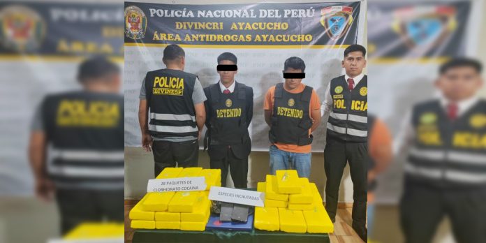En un significativo golpe contra el tráfico ilícito de drogas (TID), agentes del Área Antidrogas de la División de Investigación Criminal PNP Ayacucho, en coordinación con el Departamento de Investigaciones Especiales del Vraem, lograron decomisar 28 paquetes de clorhidrato de cocaína. La acción policial se llevó a cabo en inmediaciones del parque El Huerto, en la ciudad de Huamanga, Ayacucho, donde se descubrió un inmueble que era presuntamente utilizado como centro de acopio de drogas y se detuvo a dos individuos involucrados en el delito.