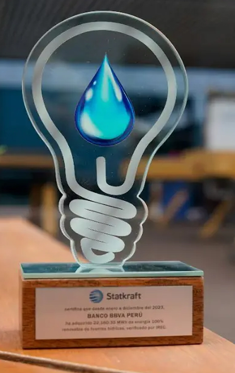 El certificado I-REC, emitido por The I-REC Standard Foundation, especifica la procedencia de la energía renovable utilizada por BBVA en sus instalaciones. En este caso, la energía proviene de la Central Hidroeléctrica Cheves, ubicada en la cuenca del río Huaura al norte de Lima. Esta certificación garantiza que BBVA está utilizando fuentes energéticas limpias para alimentar sus operaciones.