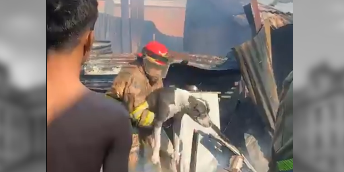 Entre los muchos desafíos que enfrentaron ese día, los bomberos encontraron una señal de vida bajo los escombros. En medio del caos, uno de los miembros del equipo de rescate, mientras removía cuidadosamente los restos carbonizados, notó un movimiento inusual. Sin perder tiempo, alertó a sus compañeros y juntos procedieron a investigar. Lo que encontraron fue algo que dejó una marca imborrable en sus corazones: un perro asustado y tembloroso, atrapado bajo los restos de lo que una vez fue su hogar.