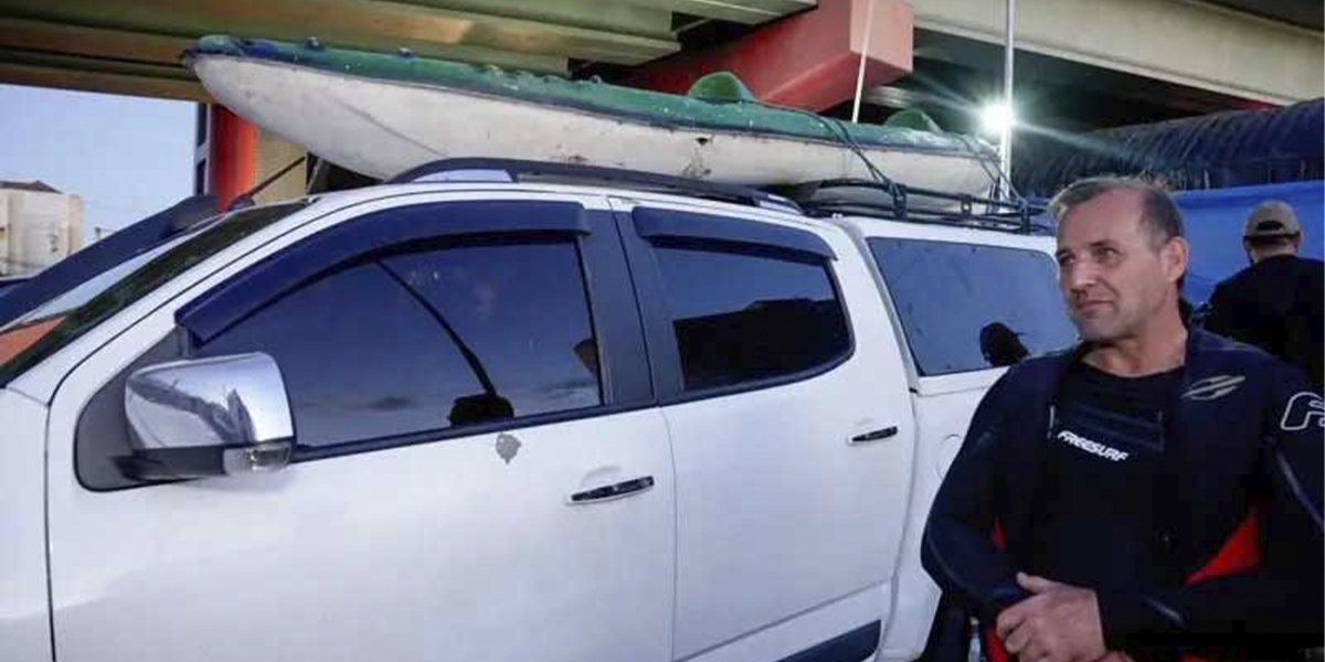 A pesar de su falta de experiencia, decidió pedir prestado un kayak (tipo de canoa en la que van uno o dos acompañantes y se impulsan sobre el agua de los ríos con una pala o remo manejada manualmente) y se dirigió a la ciudad de Canoas, una de las más afectadas.