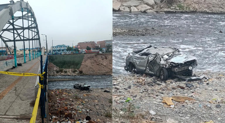 En el límite de los distritos de San Martín de Porres y el Callao, exactamente en el puente Fernando Belaunde Terry, un auto cayó estrepitosamente luego de escapar de la policía a alta velocidad y terminó destrozado a orillas del río Rímac.