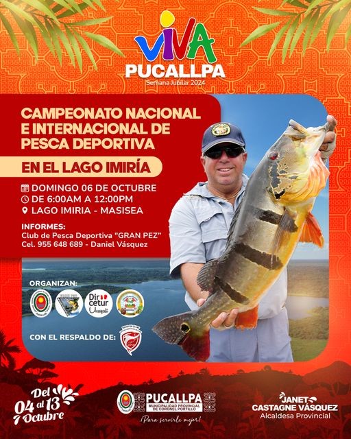 De esa manera, el próximo 6 de octubre, como parte del programa por la Semana Jubilar Viva Pucallpa 2024, se realizará el Campeonato nacional e internacional de pesca deportiva en el más grande lago del Ucayali, uno de los más célebres humedales de esta parte de la amazonia, es decir, en el lago Imiría del distrito de Masisea.