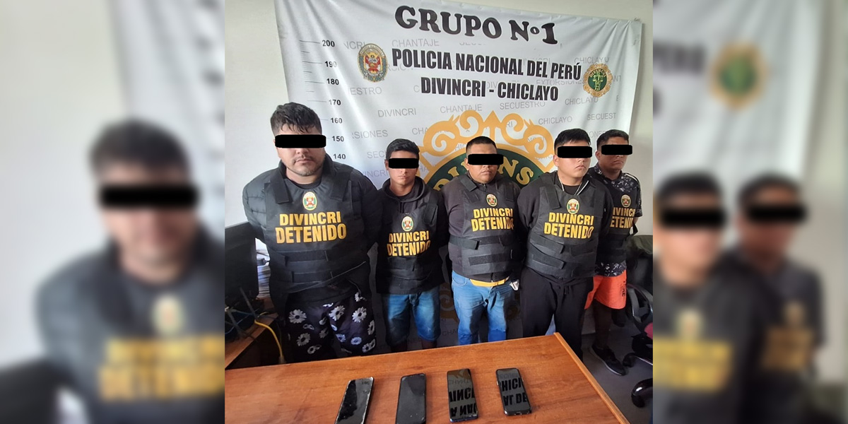 La operación se inició tras recibir una denuncia de extorsión. Los efectivos policiales realizaron labores de seguimiento y vigilancia, logrando ubicar a los delincuentes en el momento preciso en que negociaban la entrega de dinero. Los intervenidos fueron identificados como Jhamer Jhon Guerrero Paz (29), Ricardo Brayan Berrú Cotrina (21), Brayan Jordán Linares Urbina (29), Gerson Brayan Cortez Delgado (25) y Danin Michael Gómez Nuñez (31).