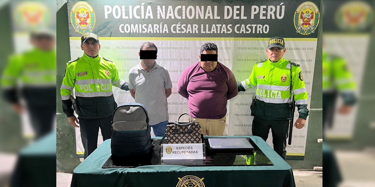 Efectivos de la comisaría PNP César Llatas Castro, de la Región Policial Lambayeque, intervinieron a dos sujetos implicados en el hurto de una laptop y artículos personales en agravio de una mujer. El incidente ocurrió al interior de una habitación ubicada en la calle Sáenz Peña, Chiclayo, Lambayeque.
