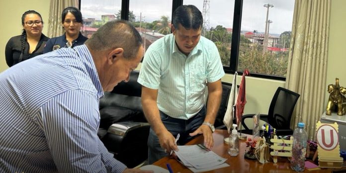 En la mañana del jueves, el director regional de Trabajo y Promoción del Empleo de Ucayali, abogado Juan Zevallos, firmó convenio de cooperación interinstitucional, con el alcalde de la municipalidad provincial de Atalaya, Francisco Mendoza de Souza, para reforzar la promoción del empleo a nivel departamental.