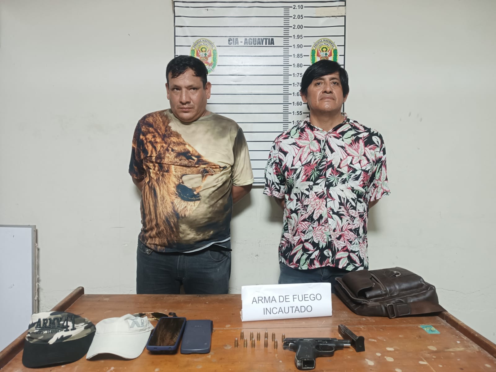 Los individuos fueron capturados en una vivienda ubicada en la cuadra 1 del jirón Las Orquídeas, en la junta vecinal Pampa Yúrac de Aguaytía, en posesión de una pistola marca Tisas, calibre 380, junto con una cacerina abastecida con 11 cartuchos, diez de ellos del tipo punta hueca, conocidos como ‘dum-dum’. Los cargos presentados contra ellos incluyen la presunta comisión de los delitos contra la seguridad pública, en la modalidad de tenencia ilegal de arma de fuego, y contra el patrimonio, en la modalidad de extorsión.