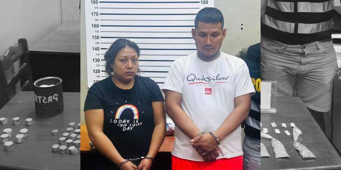 En un contundente golpe a la microcomercialización de drogas, personal policial de Orientación del Esfuerzo de Búsqueda de Información –OEBI- de la Comisaría de Pucallpa detuvo en una vivienda del fumadero conocido como “La Bombonera” a una pareja dedicada a la microcomercialización de drogas, a quienes encontró en su poder ketes y bolsas con pasta básica de cocaína.