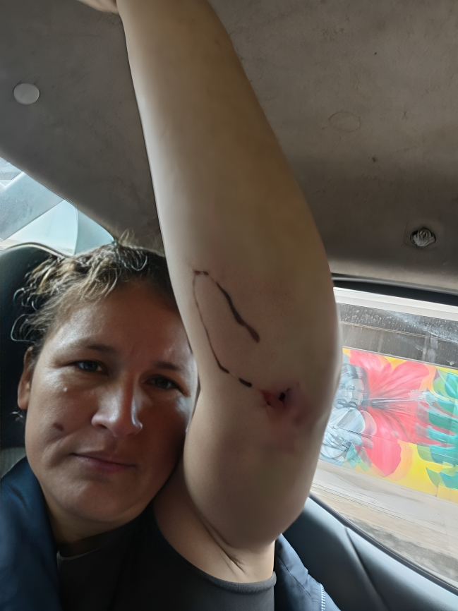 La señora Villena Mozombite fue agredida con un objeto cortante, aparentemente un cortaúñas, y sufrió una herida en el brazo izquierdo. De inmediato, fue trasladada al Hospital Regional de Pucallpa donde recibió atención médica por parte del cirujano de turno Félix Páucar Curo, quien le curó la herida. Tras recibir la atención médica necesaria, Maribel Villena Mozombite regresó a la comisaría para continuar con las diligencias pertinentes.