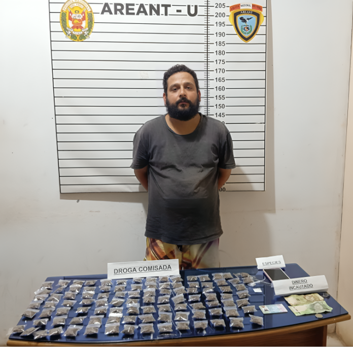 Al ingresar al lugar, las autoridades hallaron un total de 98 bolsitas conteniendo marihuana, así como dos bolsitas más con clorhidrato de cocaína. Además, se decomisó la suma de 25 soles en efectivo que se encontraban encima de una cómoda y un teléfono celular, elementos que, según las investigaciones, estarían vinculados con la presunta actividad delictiva de Ángel Arango.