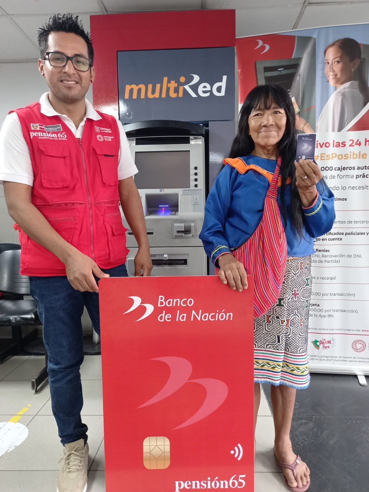 En el marco del plan de cierre de brechas del MIDIS actualmente el departamento de Ucayali cuenta con más de 18 mil adultos mayores afiliados al Programa Pensión 65 que cada dos meses cobran 250 soles en las agencias del Banco de la Nación, en este sentido, para asegurar una mejor atención se viene trabajando la modernización de pago entregando tarjetas de débito – MultiRed a los usuarios del Programa, de esta manera pueden cobrar su pensión mediante cajeros automáticos y agentes corresponsales que se encuentran ubicados en las diferentes comunidades y distritos de Ucayali.