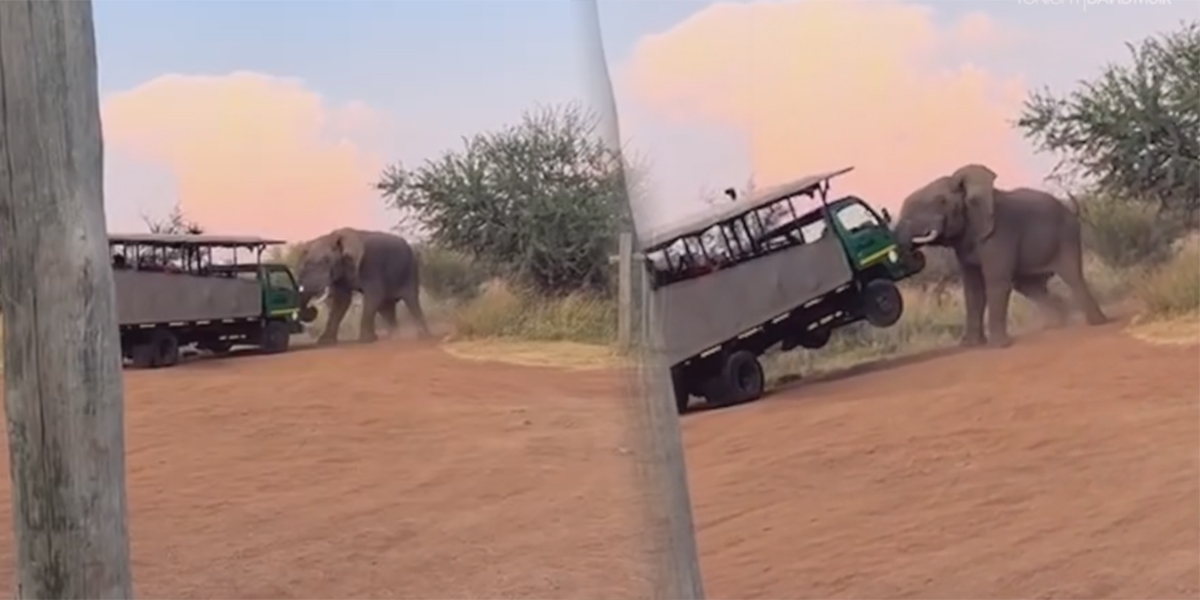 En Bojanala, Sudáfrica, un elefante embistió a un camión en el que se encontraba un grupo de turistas.