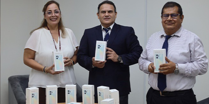 Como parte de la mejora del acceso a la justicia en Ucayali, el presidente de la Corte Superior de Justicia de la región, el Dr. Tulllio Bermeo Turchi, entregó de manera simbólica 13 celulares. Estos dispositivos fueron otorgados a la administradora del Módulo de Familia, Dra. Milagros Reategui Arcos, y a la jueza Dra. Jessenia Tafur Ríos, del Juzgado de Familia Transitorio Subespecializado en Violencia contra las Mujeres, en representación de los magistrados de los juzgados de familia. Acompañando esta entrega estuvo presente el gerente de este distrito judicial, el Dr. Jesús Quintana Rojas.