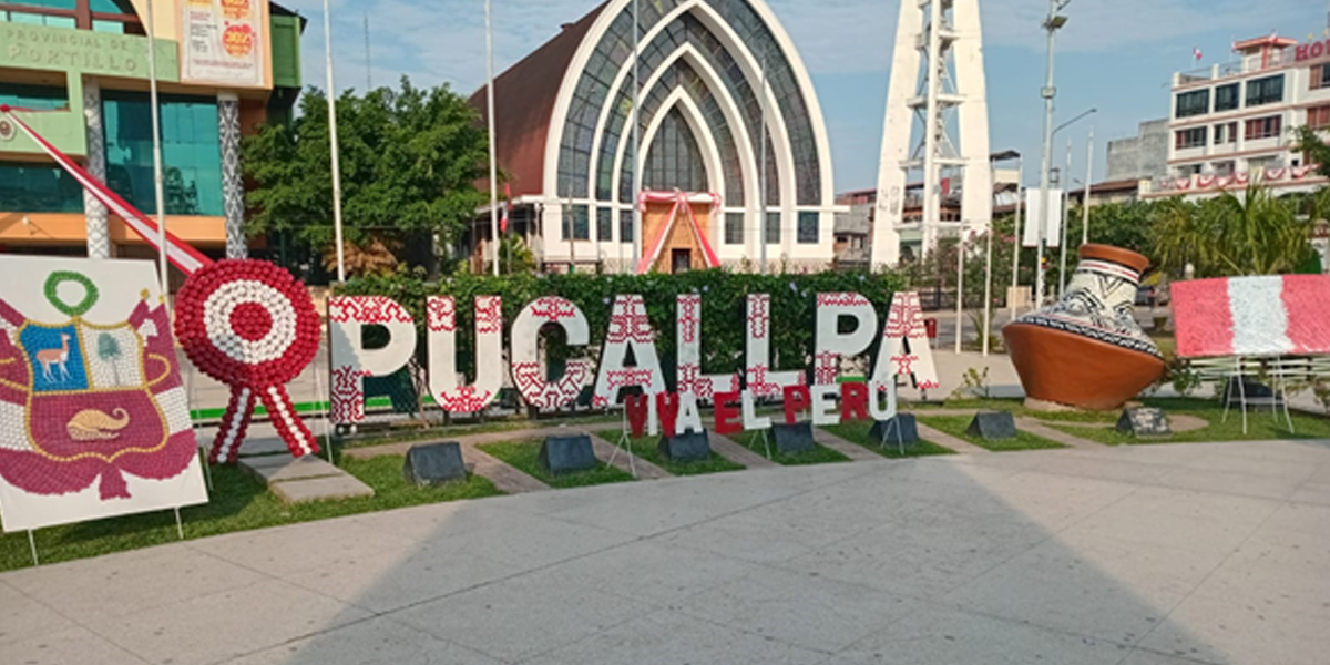 Promotores Ambientales del Programa Municipal EDUCCA y Programa de Educación y Comunicación para la Gestión Integral de Residuos Sólidos, utilizando material reciclable, elaboraron los símbolos patrios que, en estos días, son exhibidos en el frontis de la municipalidad provincial de Coronel Portillo.