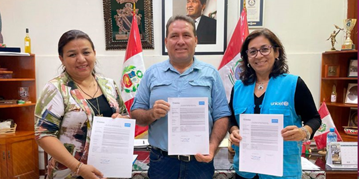 En la suscripción del Plan estuvieron el gobernador Manuel Gambini Rupay, la gerente de Desarrollo Social, Rocío Villavicencio Cuenca por el GOREU y la Ingeniera Gisella Godier por UNICEF.