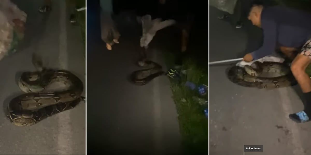 La presencia del reptil en medio de la carretera planteaba un riesgo tanto para el animal como para los conductores, lo que motivó a los jóvenes a actuar con rapidez y determinación. Con destreza y cuidado, lograron capturar al reptil vivo, demostrando valentía y preocupación por la fauna local en igual medida.