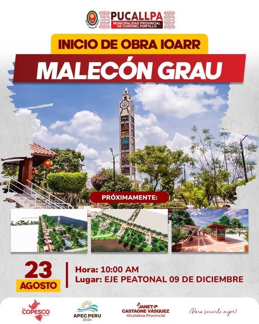 Después de superar una serie de temas legales, a las 10 de la mañana de hoy, en ceremonia especial, se iniciará la obra de remodelación del Malecón Grau, la última de las tres Inversiones de Optimización, de Ampliación Marginal, de Rehabilitación y de Reposición (IOARR) aprobadas para ejecutarse antes del inicio del Foro APEC en Pucallpa.