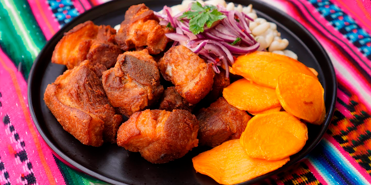 El chicharrón de cerdo es un ícono culinario en Perú. Este plato se distingue por su meticuloso proceso de preparación: la carne de cerdo se cocina lentamente en su propia grasa hasta alcanzar una textura crujiente por fuera y tierna por dentro. Esta técnica realza el sabor natural del cerdo y refleja la habilidad artesanal de los chefs y cocineros.