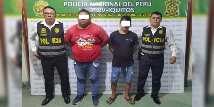 Los individuos identificados como Santiago del Aguila Perez (alias «El Pollo») y Jorge Alberto Ramos Curi (alias «La Mole») fueron detenidos por agentes policiales en una acción coordinada con el Órgano de Inteligencia de la Región Policial Loreto.