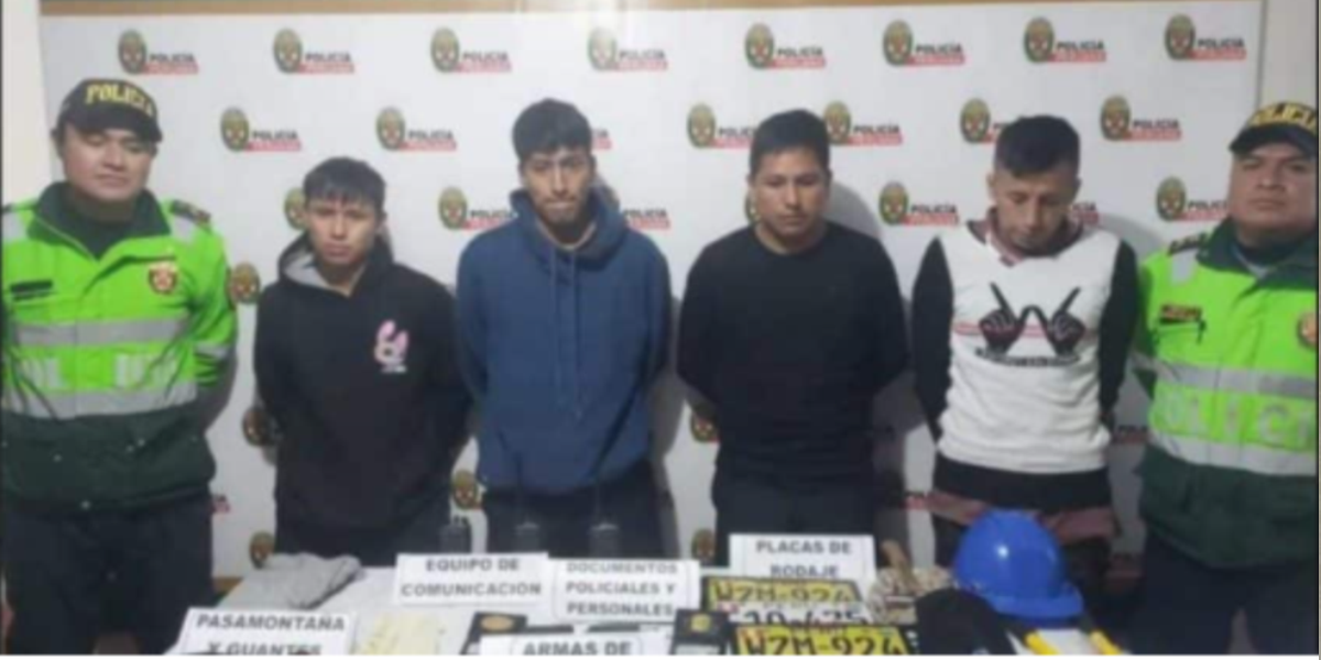 Los arrestados fueron identificados como Heiner Franco Ninahuanca Samaniego (30) y Leonardo Fabio Bonilla Contreras (26), ambos ex policías en situación de retiro, Hiriberto Miler Esteban Shuña (23) y Aldair Paul Quillatupa Rosales (19). Al verificar sus antecedentes en el sistema ESINPOL, se descubrió que Ninahuanca Samaniego y Bonilla Contreras tenían órdenes de arresto pendientes por robo agravado y conducción bajo los efectos del alcohol o drogas.