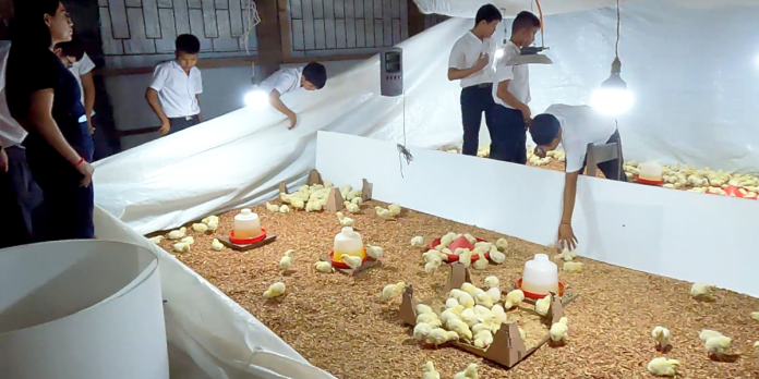 Estudiantes del nivel secundario de la Institución Educativa N° 64035 – Agropecuario, beneficiados del Proyecto Productivo Agropecuario y Piscícola, que ejecuta la Dirección Regional de la Producción, iniciaron la segunda campaña de crianza de mil pollos, financiado con las utilidades generadas en la primera campaña, actividad que proyecta ser sostenible junto a los módulos de cuyes, peces y cultivo de hortalizas.