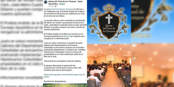La congregación «Iglesia del Final de los Tiempos» ha generado un gran revuelo en las redes sociales al anunciar la venta de «terrenos» en el cielo a sus seguidores.