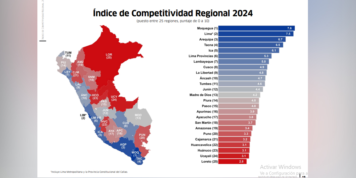 El Instituto Peruano de Economía (IPE) revela su último informe sobre la competitividad regional en Perú: el Índice de Competitividad Regional – INCORE 2024. Ucayali emerge como la segunda región menos competitiva del país, a pesar de notables mejoras en sectores clave como Instituciones, Infraestructura y Educación.