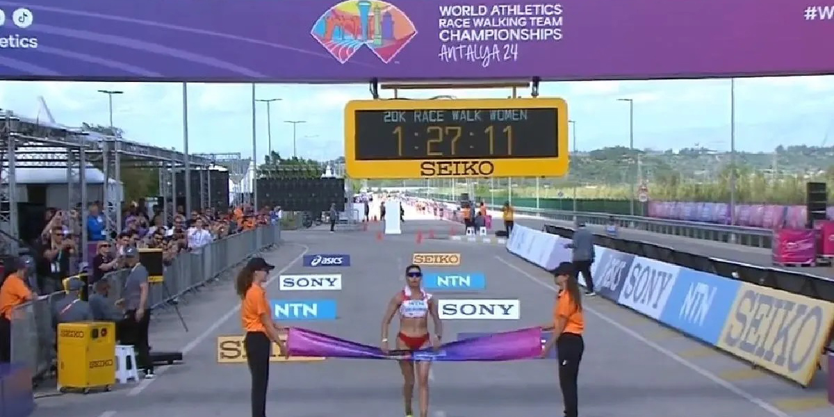 La World Athletics compartió en sus plataformas digitales un emocionante video que captura el momento exacto en que Kimberly García cruza la línea de meta en Antalya.