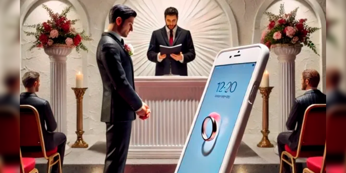 Aaron Chervenak, un hombre que decidió llevar su amor por la tecnología al siguiente nivel, se casó simbólicamente con su celular en una peculiar ceremonia en Las Vegas. Vestido de forma elegante, Chervenak selló su compromiso al colocar un soporte de anillo en su dedo anular, demostrando así el fuerte vínculo emocional que siente hacia su smartphone. Esta inusual boda es un reflejo del creciente apego que las personas tienen hacia sus dispositivos móviles en la era digital.