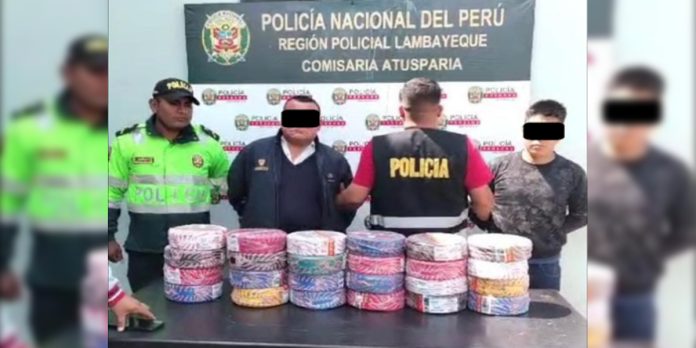 Los agentes actuaron tras recibir la denuncia de una ciudadana que indicó ser víctima de estafa. En respuesta, se organizó un operativo que culminó con la detención en flagrancia de Celis Rimarachin Barahona (26) y Lenin Leivis Sánchez Ruiz (54). Ambos fueron sorprendidos mientras entregaban 24 rollos de cable de energía eléctrica marca Indeco, valorados en S/12,000.00. La mercadería, que tenía como destino la ciudad de Lima, fue recuperada en su totalidad.