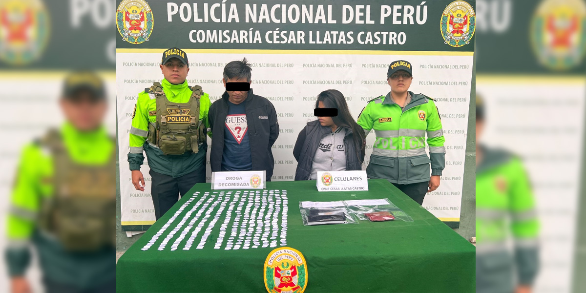 Los custodios policiales observaron a dos personas en actitud sospechosa, quienes fueron intervenidos e identificados como Marco Antonio Perleche Figueroa (43) y a Ana Belén Chafloque Paredes (28); durante la intervención se les encontró 475 envoltorios con pasta básica de cocaína (PBC) y dos celulares, de los cuales, uno registró como IMEI duplicado o clonado en el sistema de Osiptel.