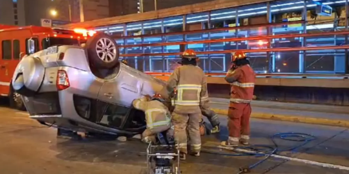 Hizo falta el apoyo de dos unidades de bomberos para regresar las llantas del móvil al suelo y este pueda ser movido por las autoridades a pasar las pesquisas correspondientes.