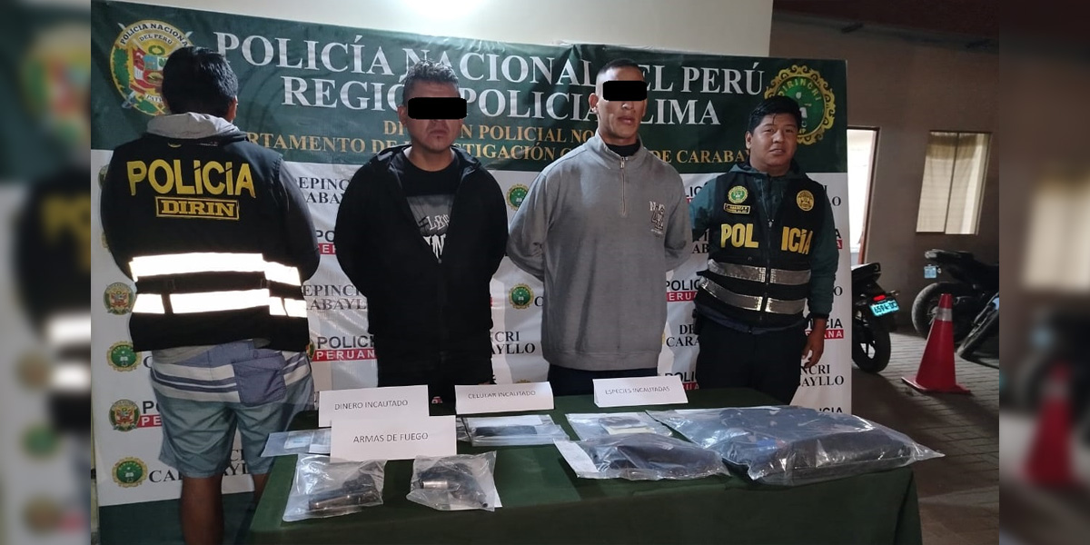 Durante la intervención, fueron detenidos Mario Herry Alegría Roncal (25) y Jorel Vladimir Gamboa More (36), quienes habrían participado en el asalto armado de una pollería en el programa de vivienda San Francisco de Carabayllo. Alegría Roncal opuso tenaz resistencia apuntando con un arma al personal policial. En el registro se incautaron una pistola Baikal 380 con cacerina, una réplica de arma de fuego, un celular, S/500.00 y otros objetos.