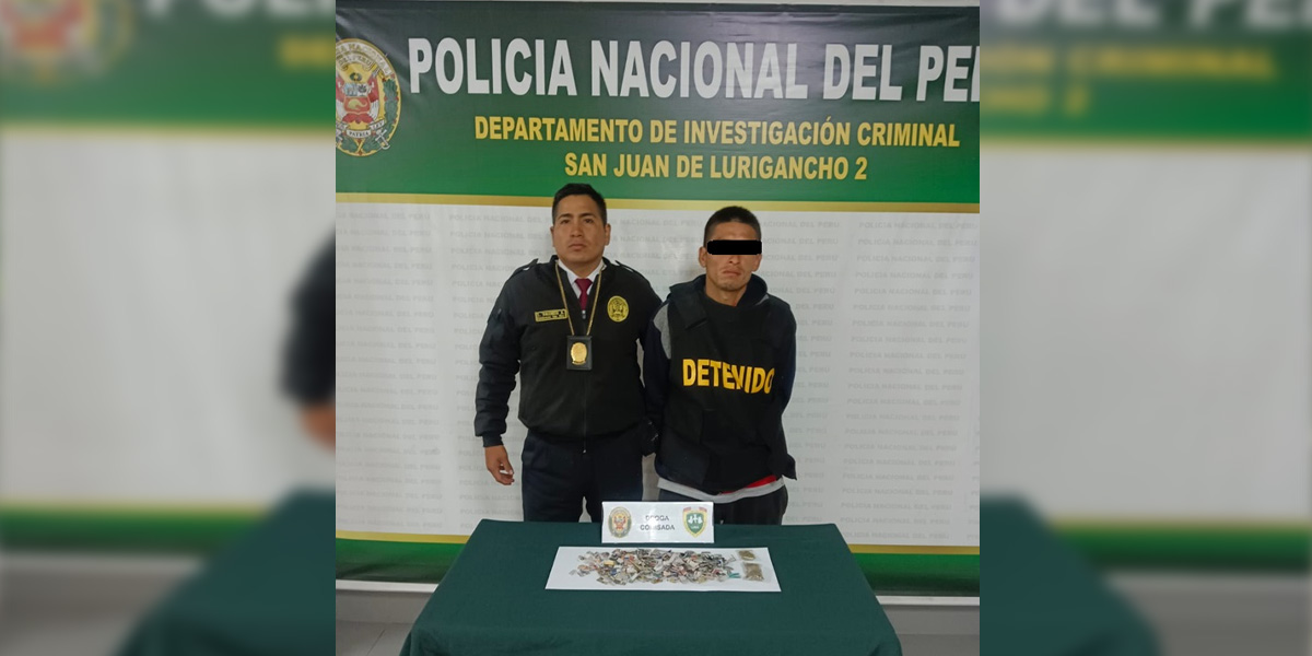 El sospechoso, identificado como Junior Anderson Contreras Ramírez (30), fue interceptado en el frontis de un mercado local ubicado en la avenida Santa Rosa. Tras una exhaustiva revisión, las autoridades confiscaron 200 envoltorios de pasta básica de cocaína (PBC) y dos bolsas conteniendo hojas, tallos y semillas de Cannabis sativa (Marihuana), evidencia contundente de su actividad ilícita.