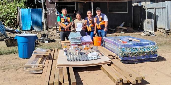 A la familia damnificada se le hizo entrega de un kit de ayuda humanitaria consistente en materiales para construir un techo, abrigos, alimentos, enseres y herramientas.