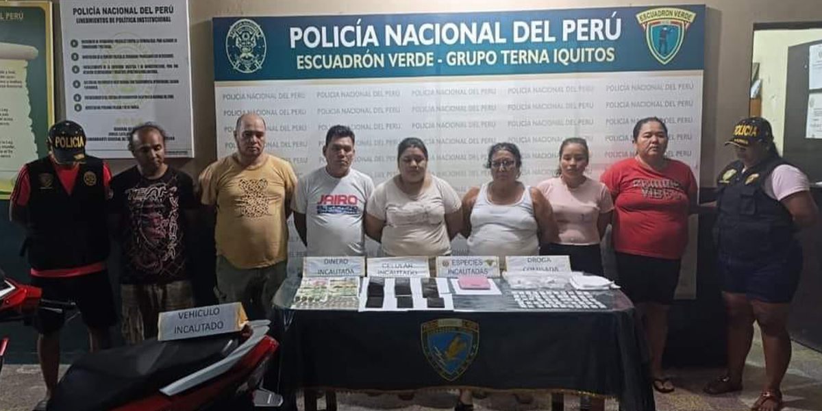 El Escuadrón Verde grupo Terna de la policía detuvo al clan familiar «Los Aguajeros de la Borja» en Punchana, por presunto tráfico ilícito de drogas (TID).