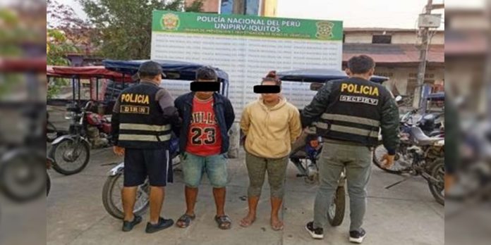 Agentes de la Unidad de Prevención e Investigación de Robo de Vehículos PNP Iquitos intervinieron a dos sujetos implicados en el hurto de vehículos menores. La intervención ocurrió en el asentamiento humano 03 de Diciembre, Punchana, Loreto.