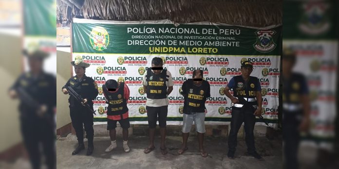 El personal policial identificó a Edmundo Riera Sánchez (63), Edgar Shahvano Chujutalli (57), y Teddy Soto Reategui (64), quienes tenían en su posesión trece trozas de madera de la especie «Pashaco», una motosierra y un motor Peque Peque 13HT. La madera, que carecía de documentación que acreditara su procedencia legal, tendría un valor en el mercado nacional de S/224,035.00.