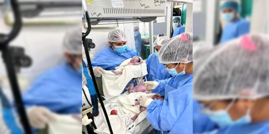 El equipo médico que realizó la cesárea fue liderado por el ginecólogo Dr. Reyles Ríos Reategui. También participaron los especialistas en neonatología Dr. Luis Avalos y Dr. Herman Silva. Las licenciadas en enfermería especializadas Iris Jomira Mori, Solange Pinedo y Mixi Rengifo, fueron parte fundamental del equipo que asistió en el cuidado de los recién nacidos.