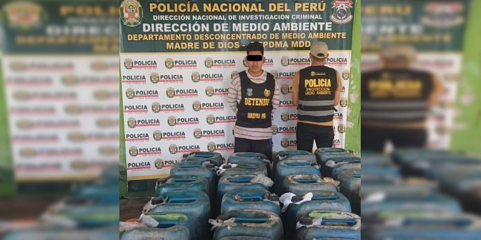Durante esta actividad, se intervino a un hombre presuntamente implicado en el delito de contaminación ambiental, bajo la modalidad de tráfico ilegal de insumos químicos destinados a la minería ilegal.