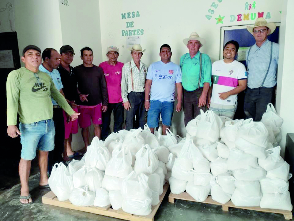 La colonia Menonita, asentada en la jurisdicción del distrito de Padre Márquez, entregó una tonelada y media de arroz a la municipalidad distrital para que sea distribuida entre las instituciones educativas con la finalidad de preparar los alimentos que consumen los estudiantes durante el almuerzo escolar.