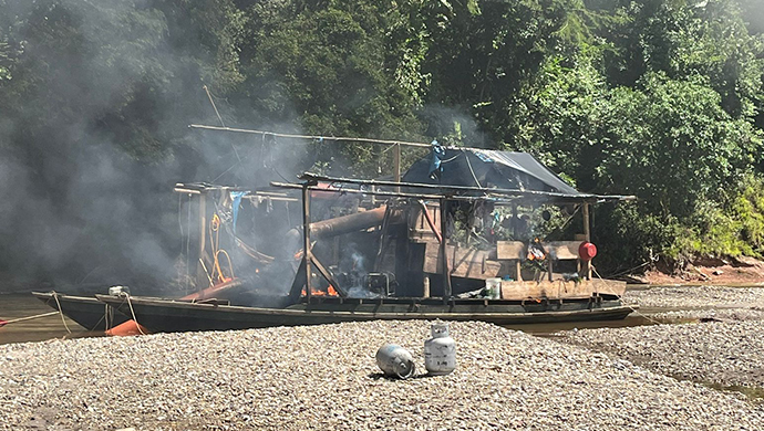 De acuerdo al monitoreo satelital, cinco de las siete dragas, estaban reunidas. En las imágenes, también pudieron observarse montículos de arena que fueron utilizados por la minería ilegal. En consecuencia, el pasado 13 de junio, la FEMA–Ucayali con la Capitanía de Puerto de Pucallpa, realizaron un operativo contra la minería ilegal en el río Aguaytía, cerca al caserío Bello Horizonte, Padre Abad, donde devastaron cuatro dragas equipadas para la extracción ilegal de oro.