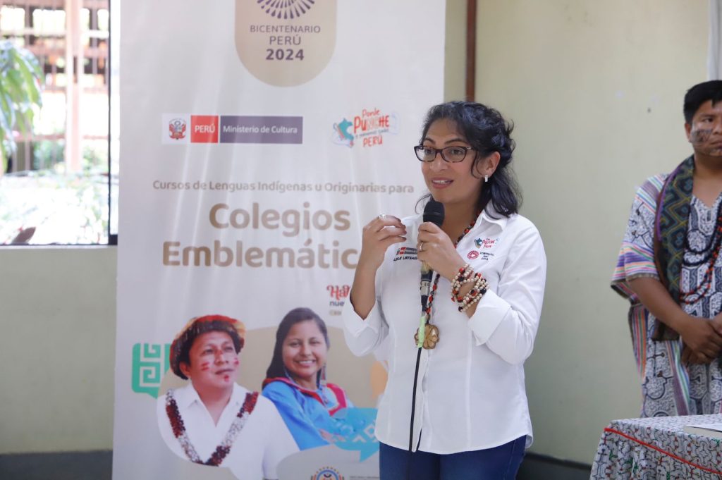 La ministra de Cultura, Leslie Urteagaayer estuvo en Pucallpa para clausurar el curso gratuito de shipibo-konibo. Foto: Ministerio de Cultura
