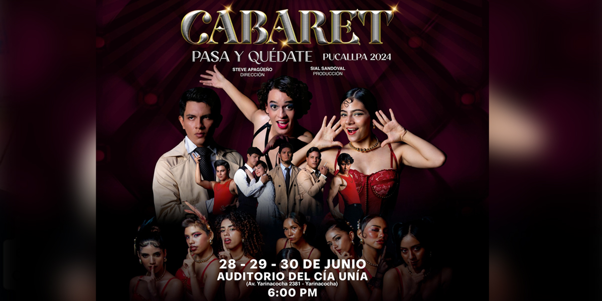 La obra teatral “Cabaret: pasa y quédate”, producido por Generación Producción (dirigido por Sial Sandoval) y Punto Fijo (dirigido por Steve Apagüeño), empezará sus presentaciones desde el próximo viernes 28 hasta el domingo 30 a las 6:00 p.m., en el Auditorio del Centro Intercultural de la Amazonía (CÍA), ubicado en la Av. Yarinacocha.