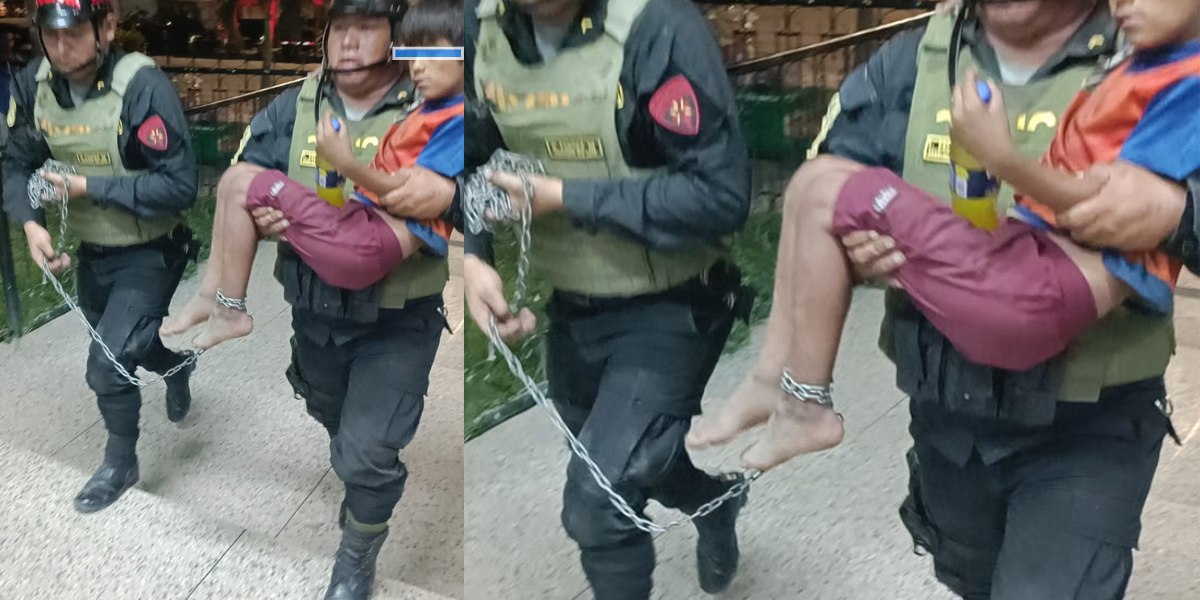 El personal de la Unidad de Emergencias de la División de Unidades Especiales de la Policía Nacional encontró a un niño desorientado mientras caminaba cerca del kilómetro 08 de la Carretera Federico Basadre. El niño estaba caminando junto a la carretera, sosteniendo una larga y pesada cadena atada a su pie izquierdo.