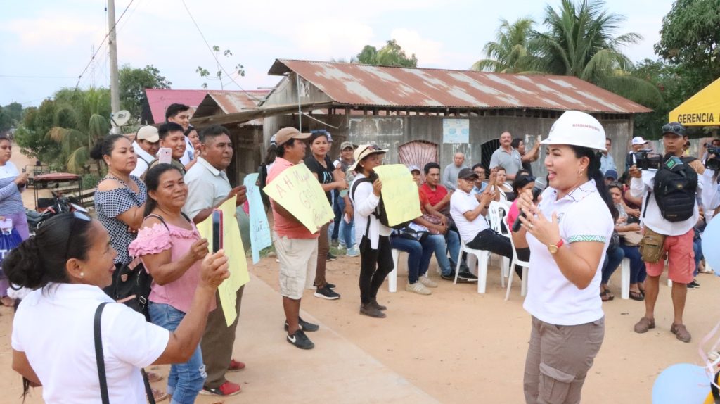 La alcaldesa fue recibida con globos, bombo baile y carteles de los diversos asentamientos humanos beneficiados como María Parado de Bellido, Nuevo Mundo, Asociación de Moradores Explanada, Las Orquídeas de 16 de octubre, Miguel Grau, Brisas de Primavera, Asociación de moradores Juan Pereira Murrieta, entre otros. También estuvieron presentes en la ceremonia el alcalde delegado de San Pablo de Tushmo Elías Flores Mori y el comisario de Yarinacocha Julio César Córdova Maldonado.