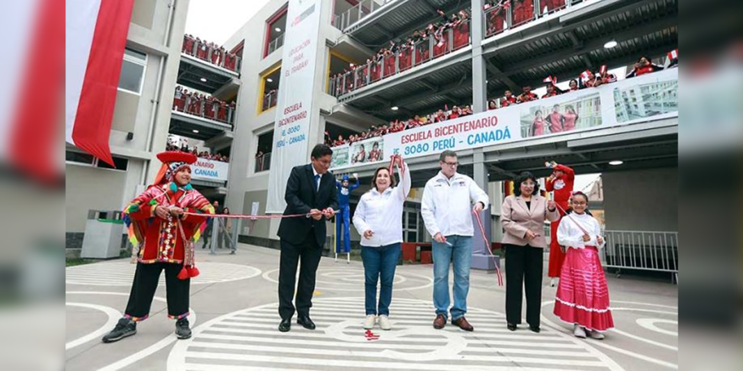 La ceremonia en Los Olivos contó con la participación del ministro de Educación, Morgan Quero, y el alcalde Felipe Castillo, quienes acompañaron a Boluarte en la inauguración de la escuela.