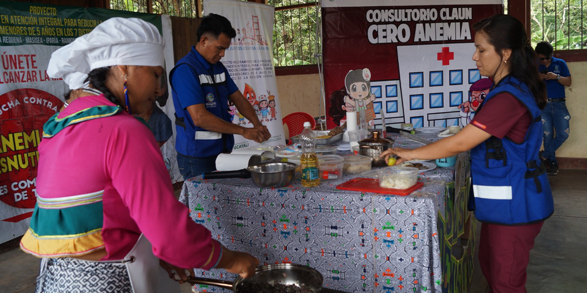 El proyecto Cero Anemia, promovido por la Gerencia de Desarrollo Social del GOREU, recorre caseríos y comunidades indígenas de siete distritos de la región Ucayali, con especialistas en promoción de la salud, nutrición, salud materna e infantil para prevenir la anemia y desnutrición crónica infantil. Su meta es atender a más de 15 mil beneficiarios, mediante actividades comunitarias.