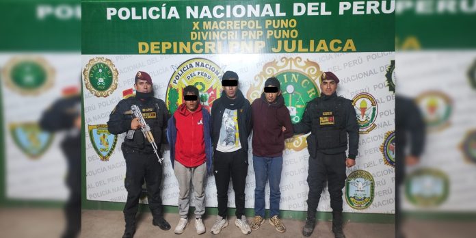 Durante un patrullaje motorizado, agentes especializados de la Unidad de Emergencia de la Región Policial Puno detuvieron a tres sujetos presuntamente implicados en el delito de robo agravado. Los detenidos formarían parte de la banda delictiva “Los Nocturnos de Juliaca”. El incidente ocurrió en un inmueble ubicado en el jr. Huáscar n.º 702, en Puno.